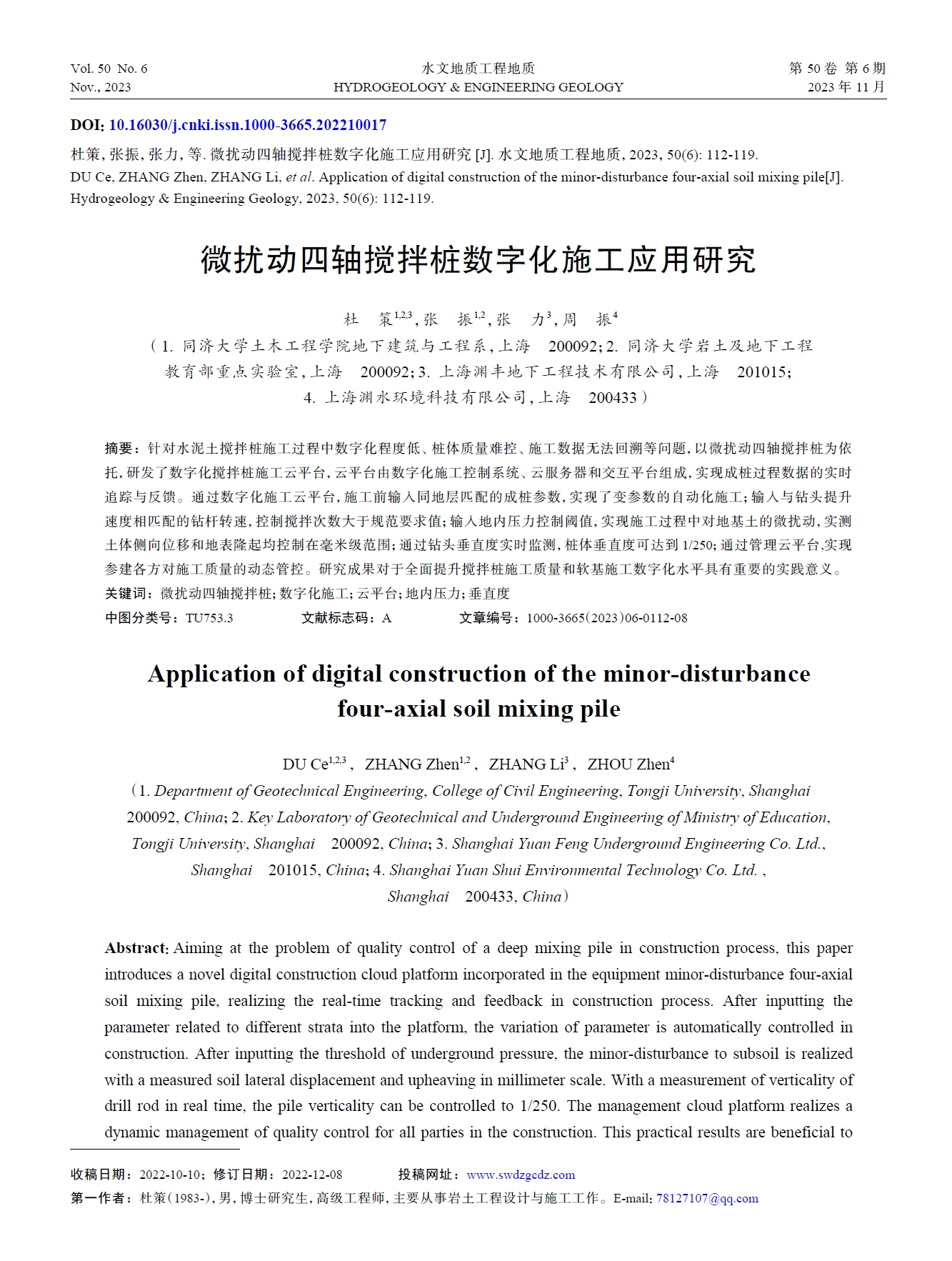 微扰动四轴搅拌桩数字化施工应用研究 (swdzgcdz.com)