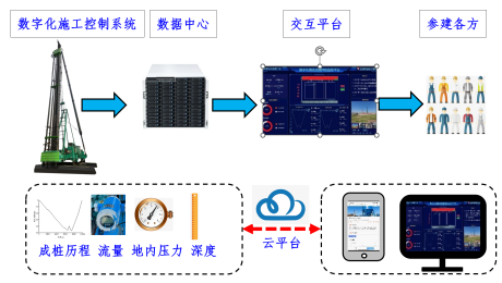 DMP工法具有数字化施工控制系统,实现了搅拌桩成桩全过程自动化施工。数字化控制系统包含定位、监控和自动施工控制的功能;基于传感器实时采集的施工数据,借助数字化控制系统实现16个阶段独立控制搅拌桩成桩施工,能够自动完成下沉、复搅、提升以及垂直度检测等,大大提升了自动化施工水平;系统能自动匹配成桩速度和浆液流量,提高了桩身质量均匀性;数字化控制系统实现了数据自动采集、传输和对异常情况报警等功能,提升了施工透明度并降低了工程风险。