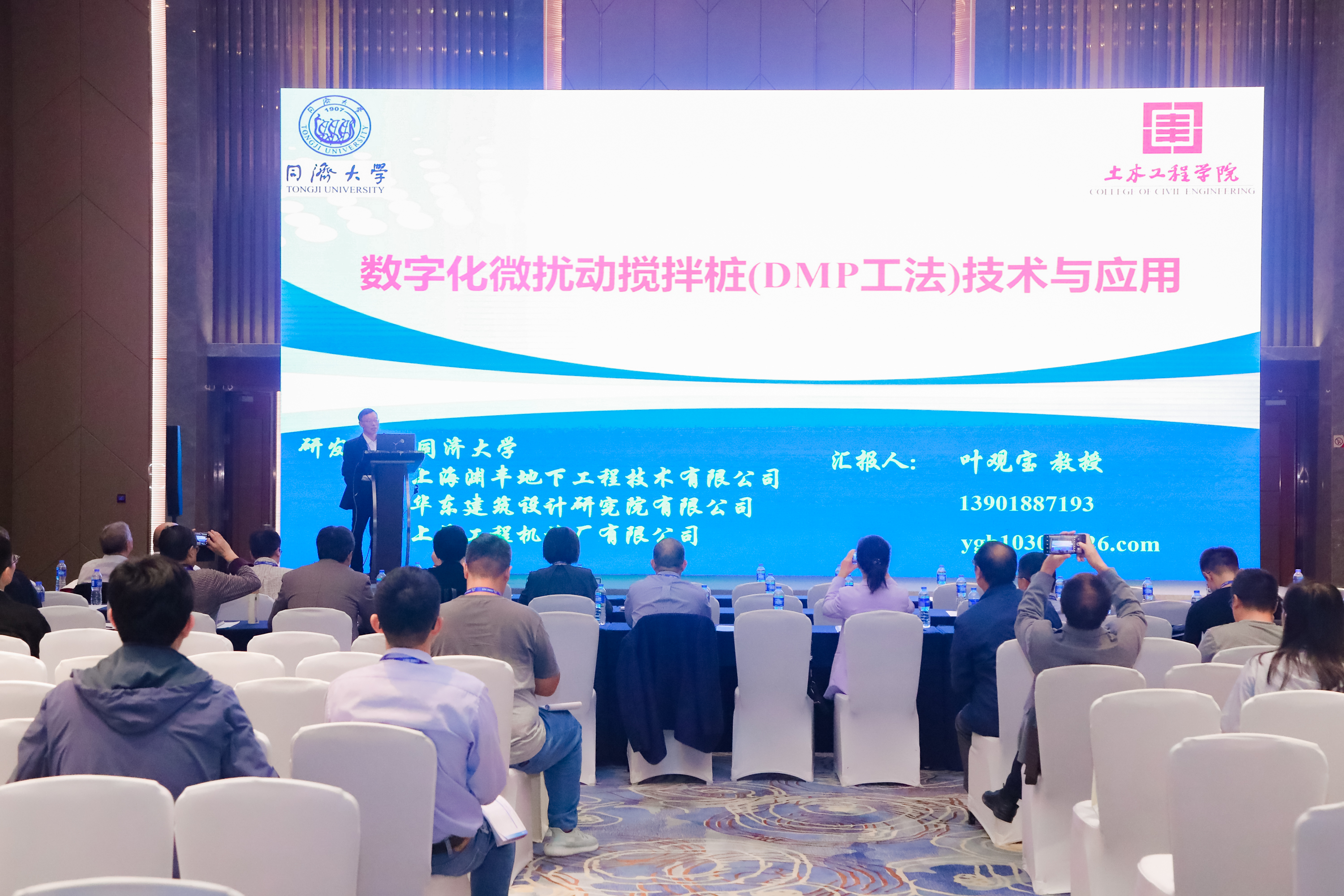 同济大学叶观宝教授在大会做题为《数字化微扰动搅拌桩(DMP工法)技术与应用》的报告,详细介绍了DMP工法的技术创新点以及在上海浦东机场四期改扩建、东方枢纽等重特大工程中的应用,DMP工法以绿色低碳、技术创新、数字化、微扰动等为特点,高度契合大会主题。