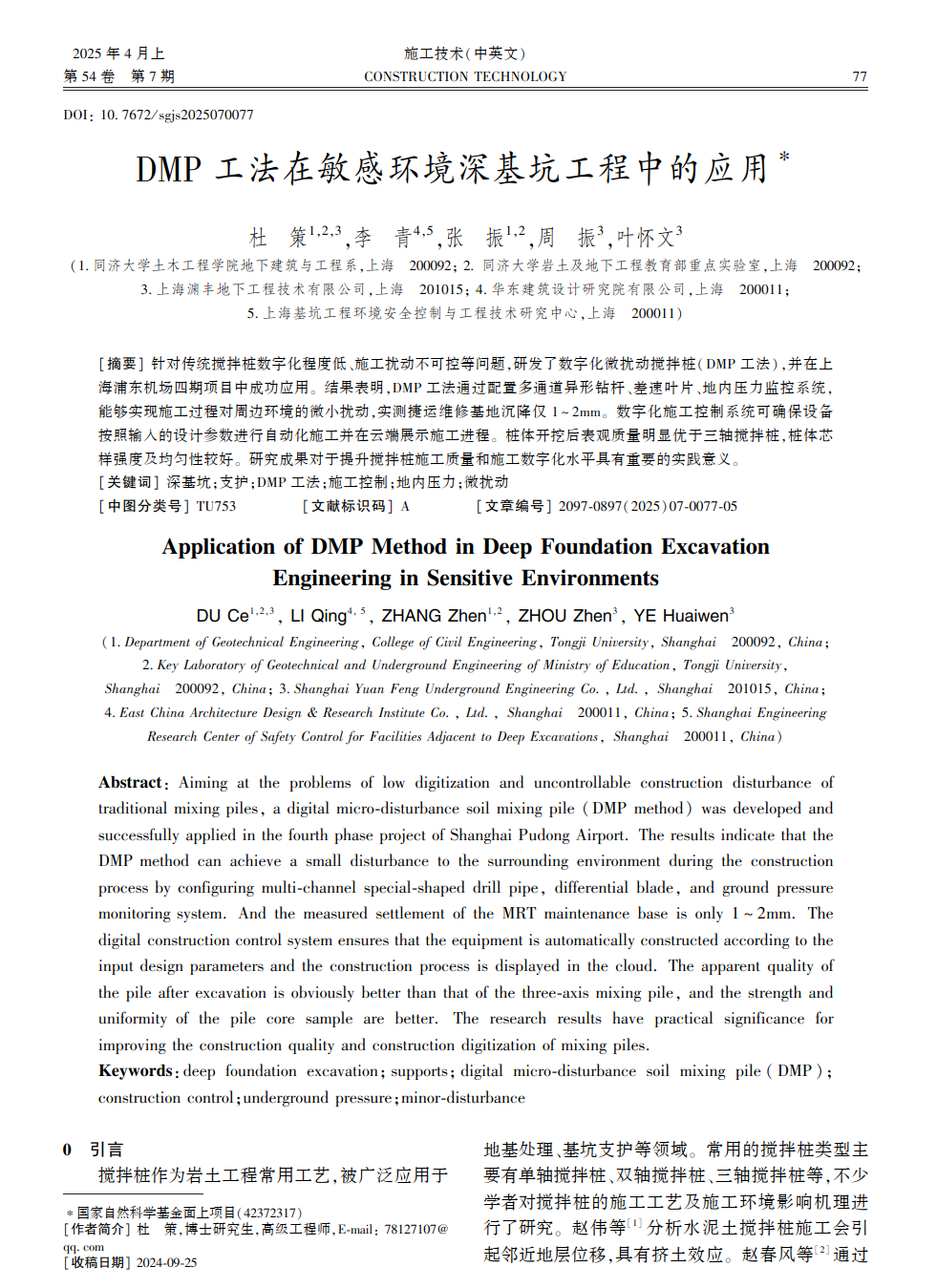 DMP工法在敏感环境深基坑工程中的应用 - 中国知网